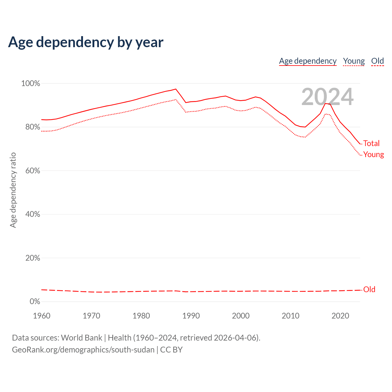 Data sources: World Bank | Health (1960–2024, retrieved 2026-04-06); U.S. Census Bureau (1960–2024, retrieved 2026-02-08).