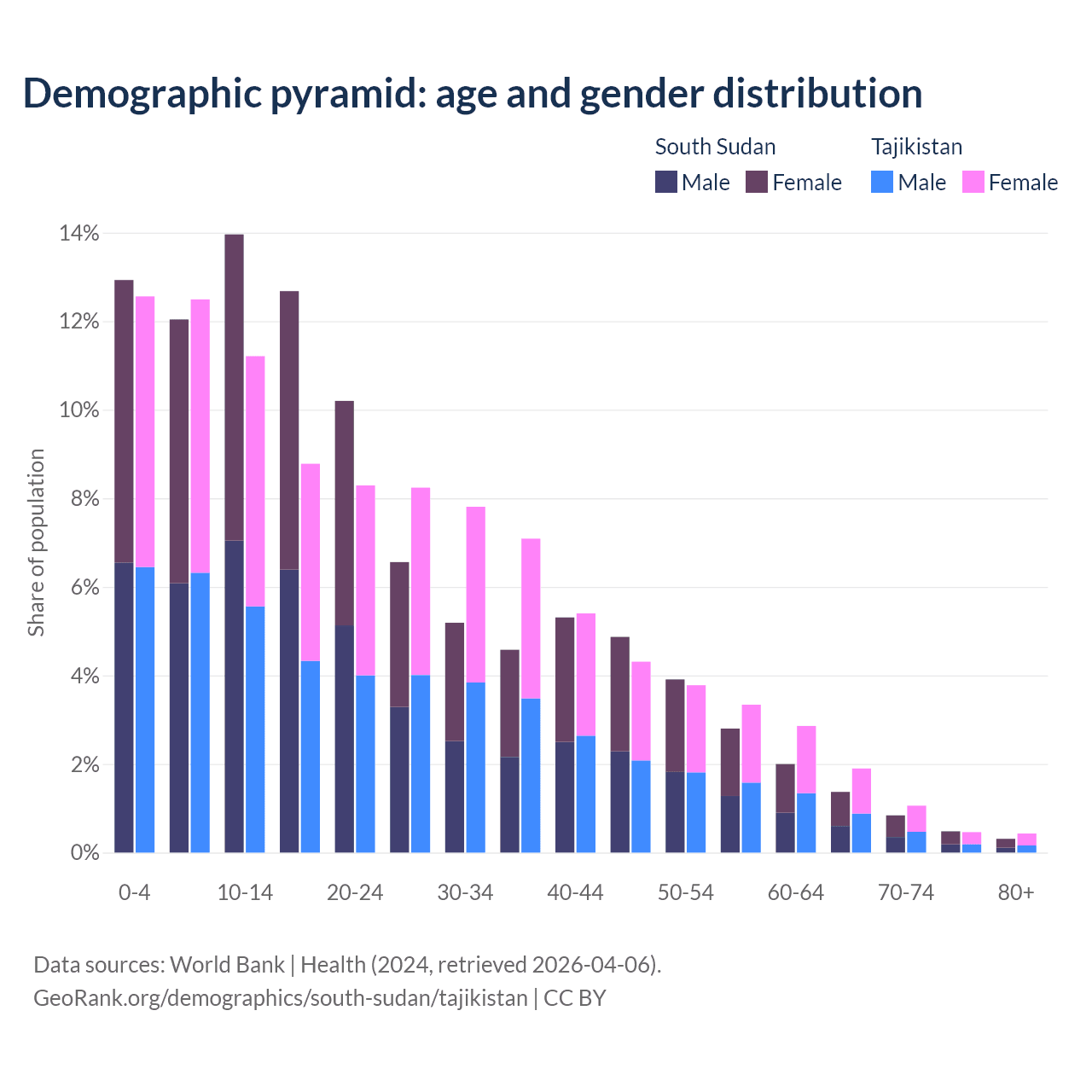 Demographics of South Sudan compared to Tajikistan: