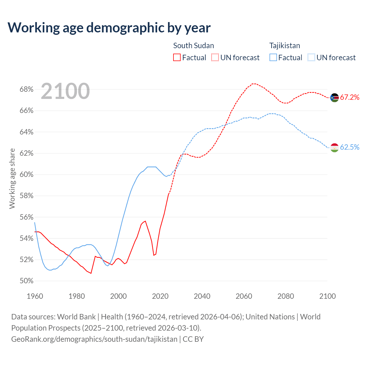 - South Sudan has 7.27M working age adults (aged 15-64) vs 6.61M in Tajikistan.