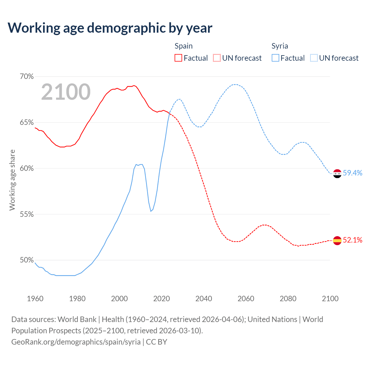 - Spain has 32.2M working age adults (aged 15-64) vs 17.7M in Syria.
