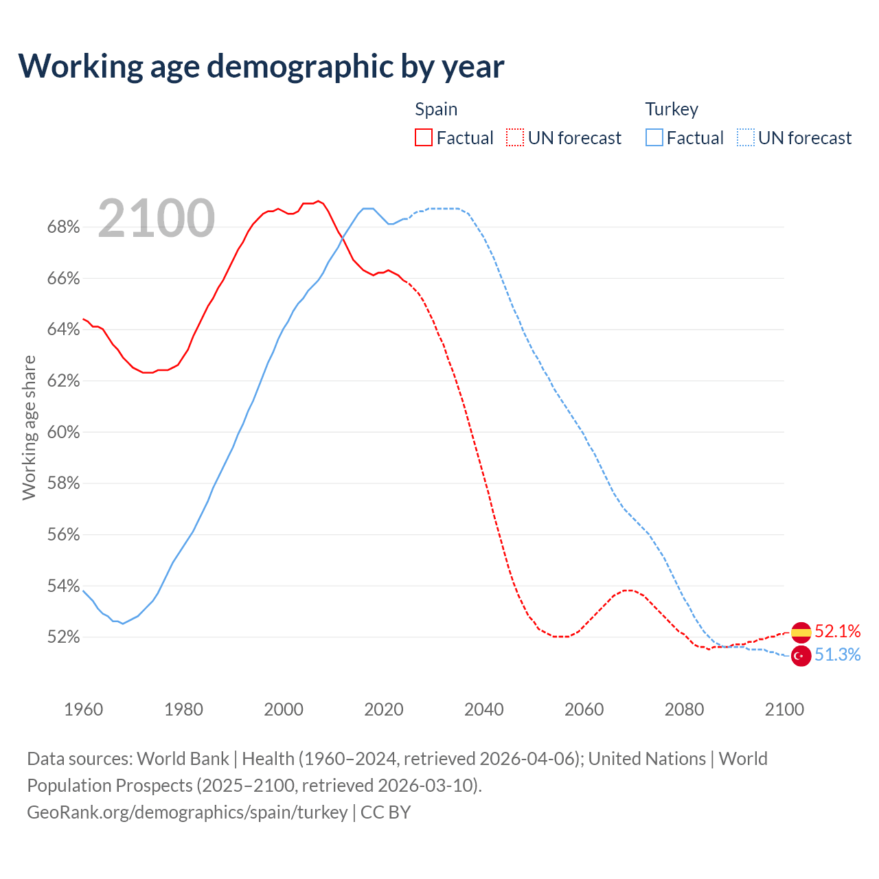 - Spain has 32.2M working age adults (aged 15-64) vs 58.7M in Turkey.