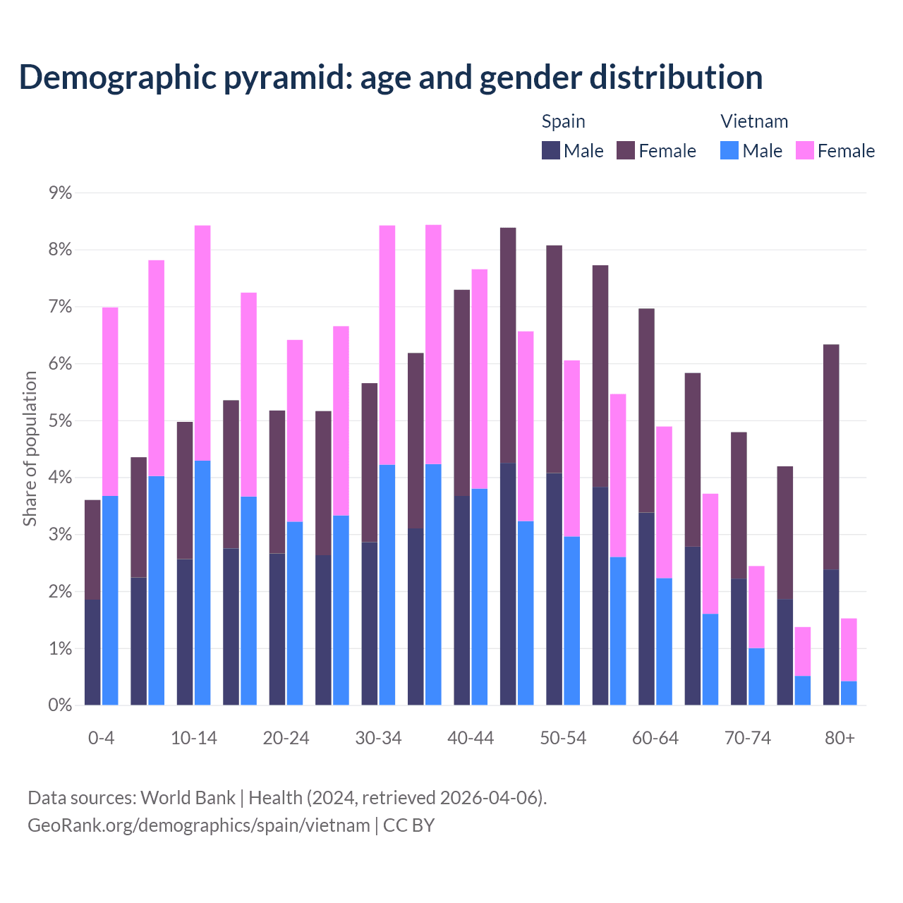 Demographics of Spain compared to Vietnam: