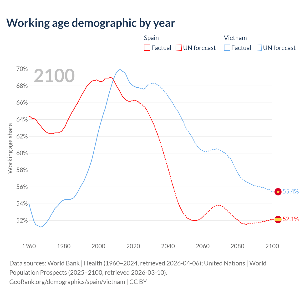 - Spain has 32.2M working age adults (aged 15-64) vs 69.3M in Vietnam.