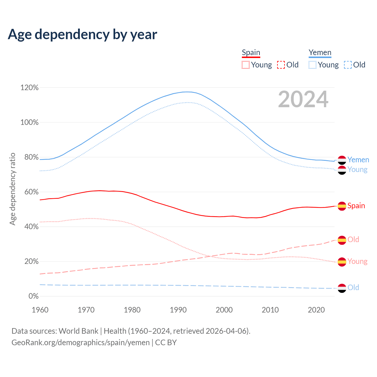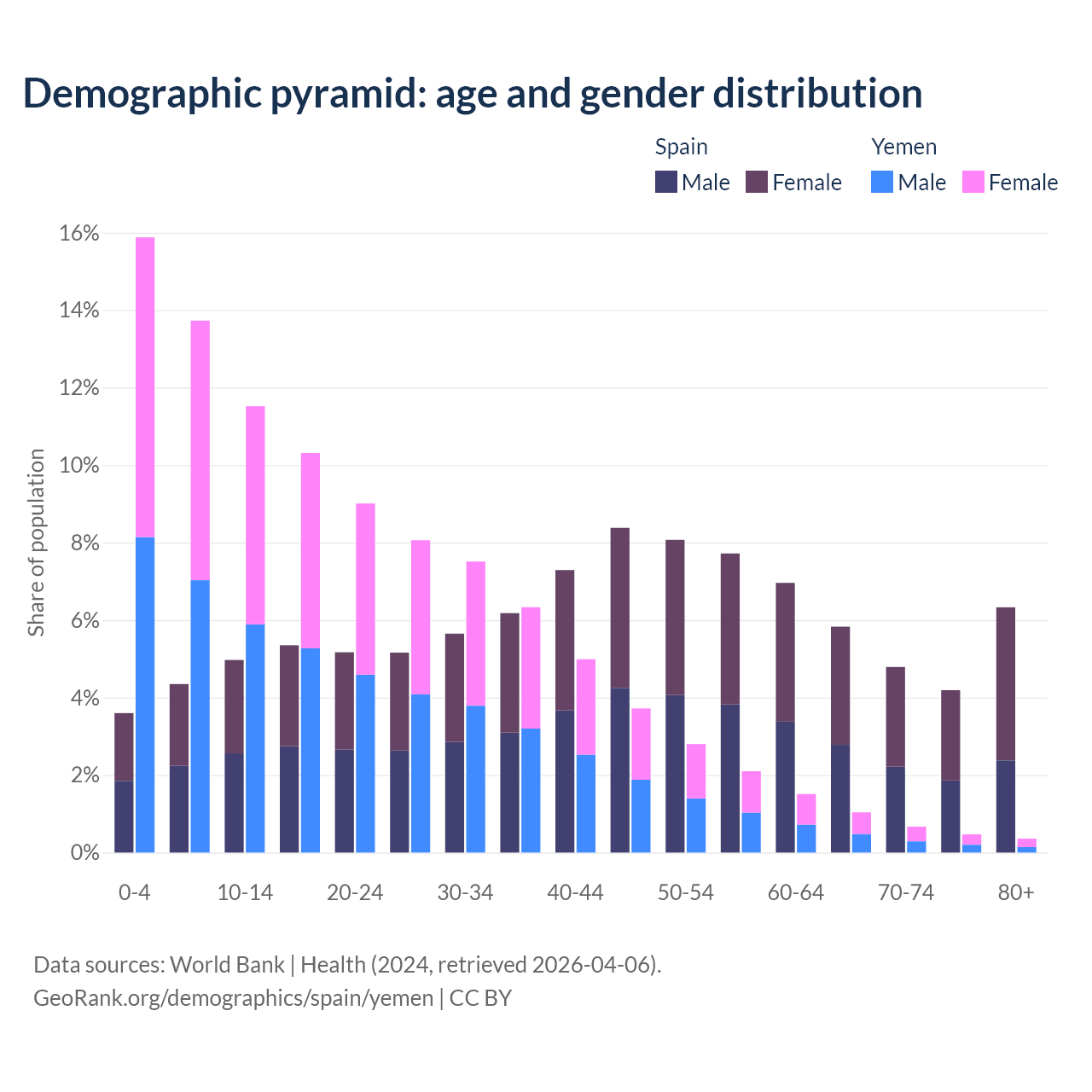 Demographics of Spain compared to Yemen: