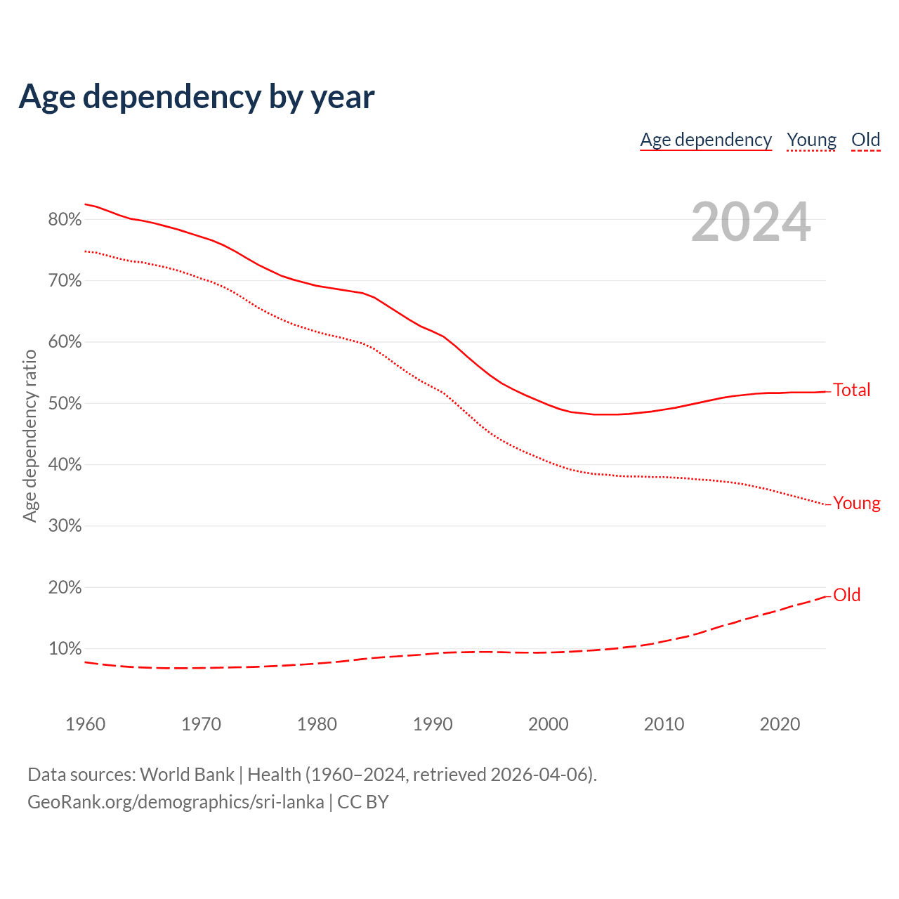 Data sources: World Bank | Health (1960–2024, retrieved 2026-04-06); U.S. Census Bureau (1960–2024, retrieved 2026-02-08).