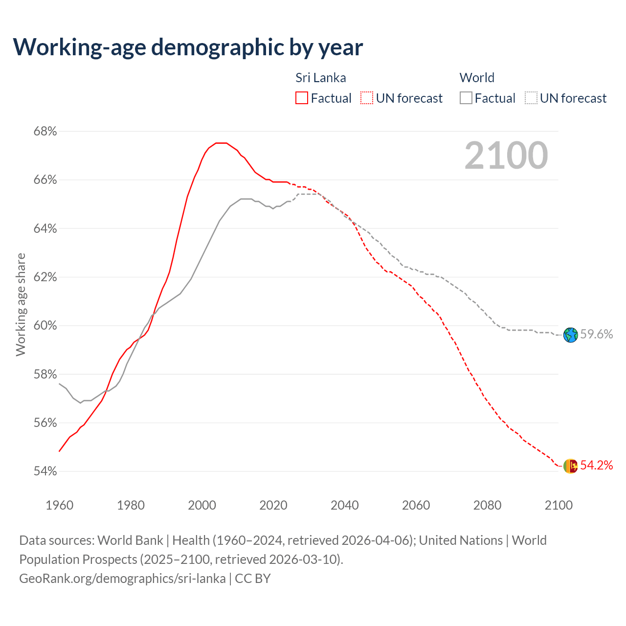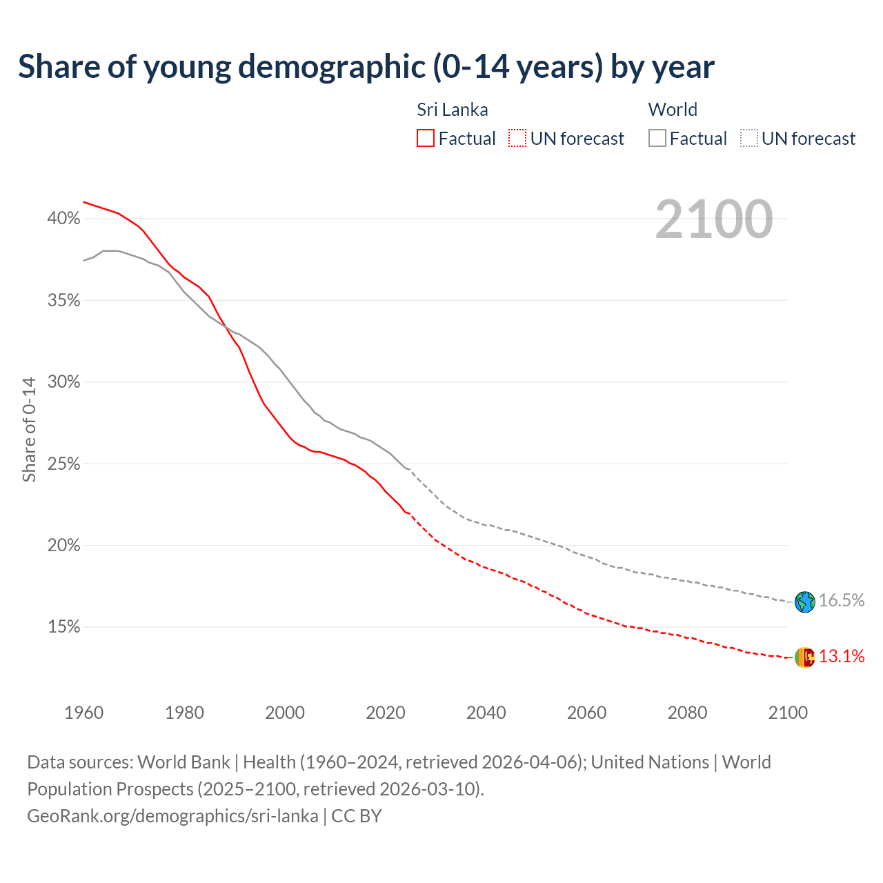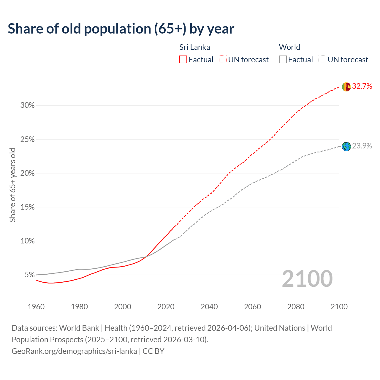 Median age in Sri Lanka, 1960–2100