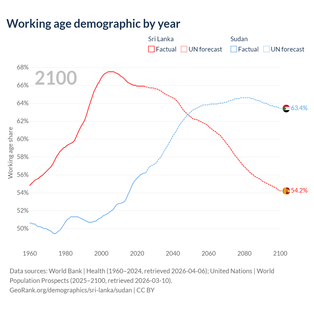 - Sri Lanka has 14.6M working age adults (aged 15-64) vs 30M in Sudan.