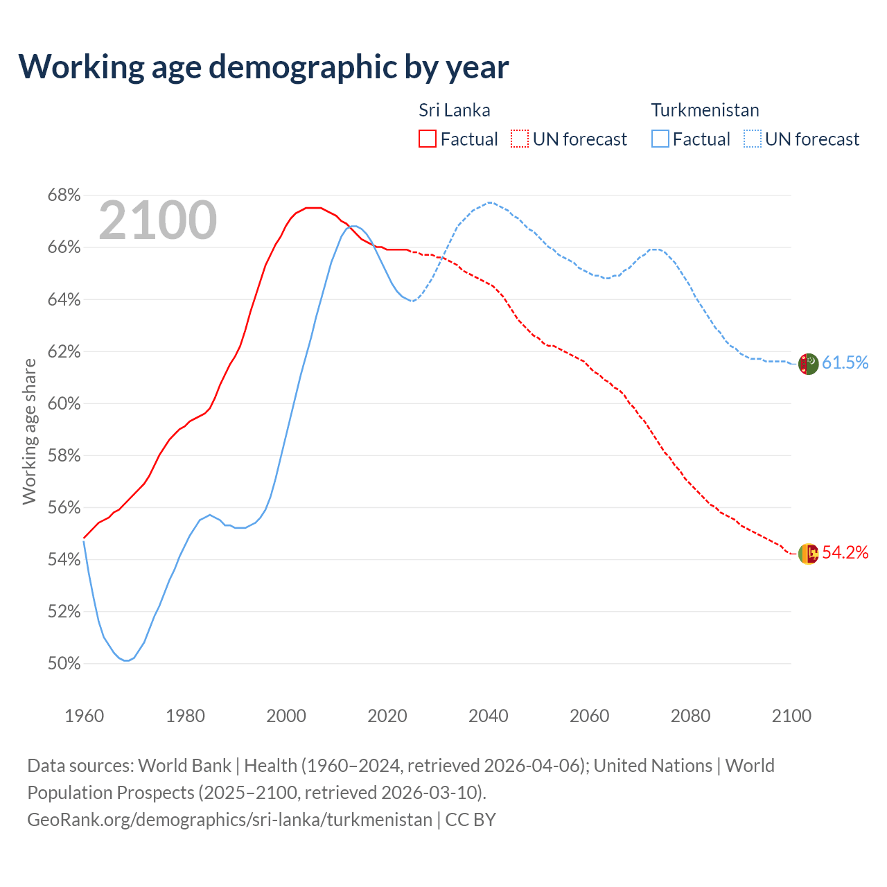 - Sri Lanka has 14.6M working age adults (aged 15-64) vs 4.97M in Turkmenistan.