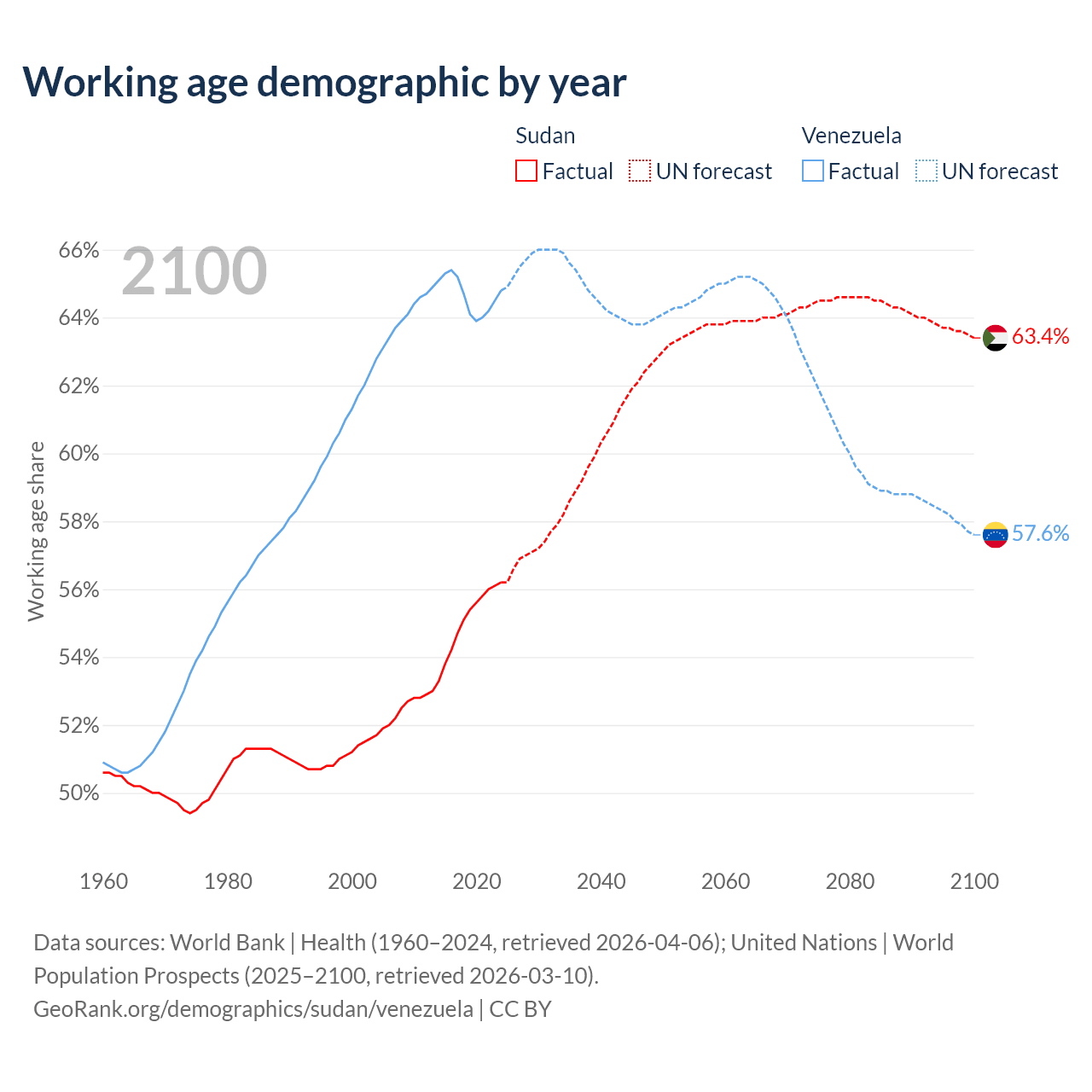 - Sudan has 30M working age adults (aged 15-64) vs 18.6M in Venezuela.