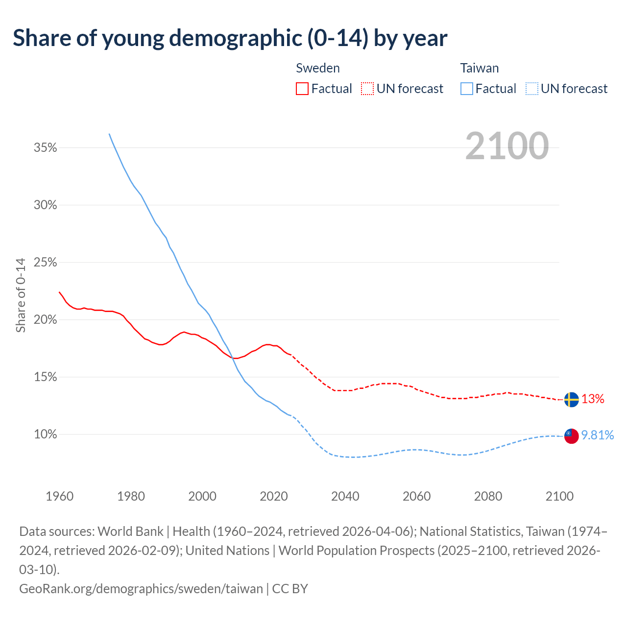 - The share of young demographic (0-15 years old) in Sweden is 17% vs 11.7% in Taiwan.
