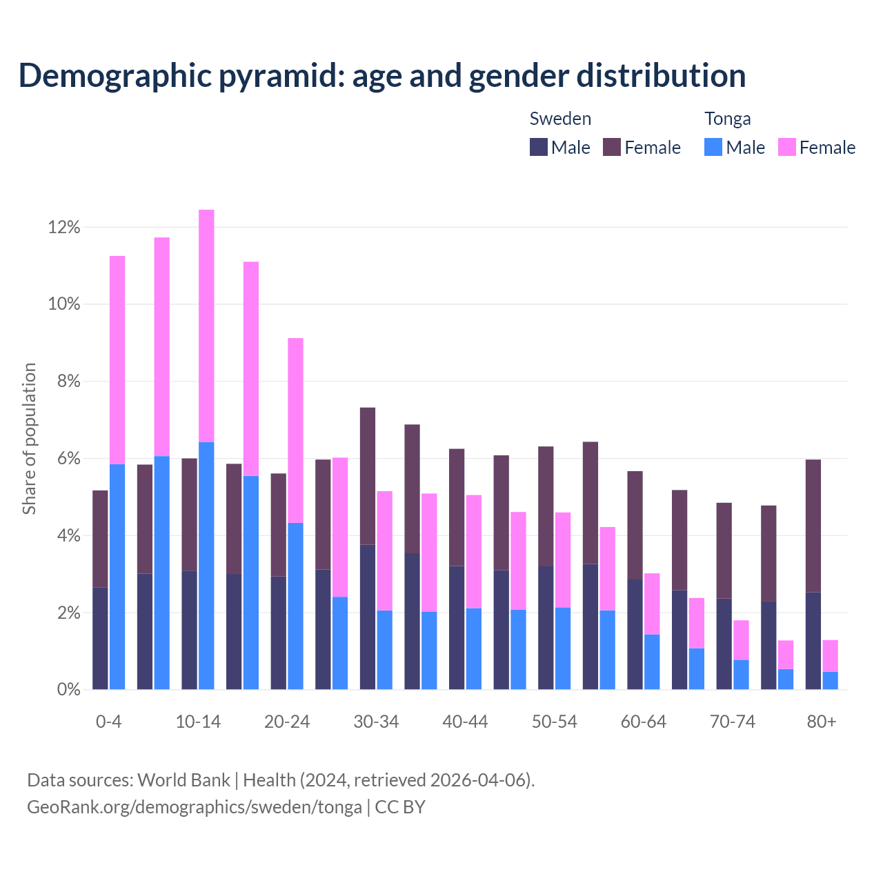 Demographics of Sweden compared to Tonga:
