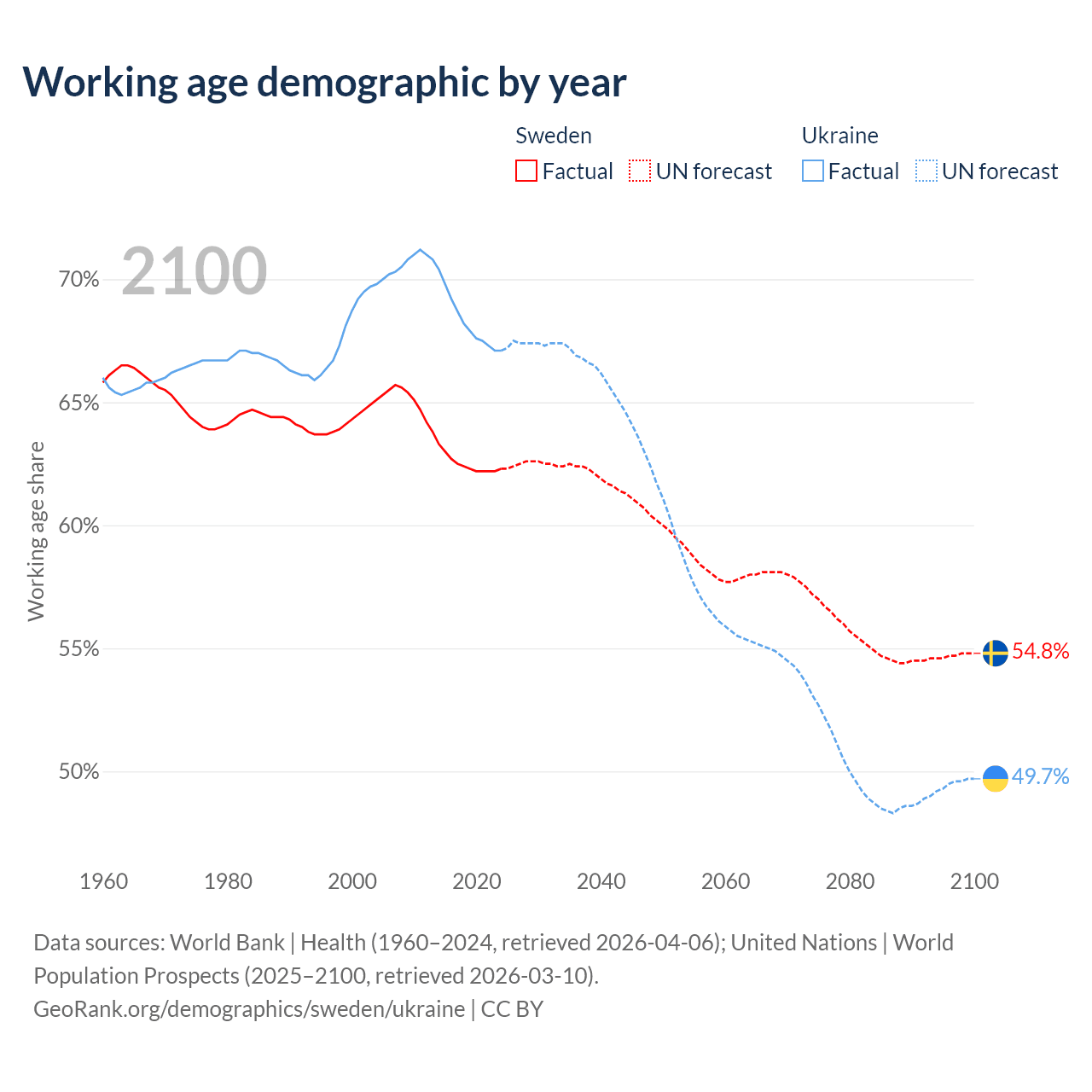 - Sweden has 6.65M working age adults (aged 15-64) vs 26.9M in Ukraine.