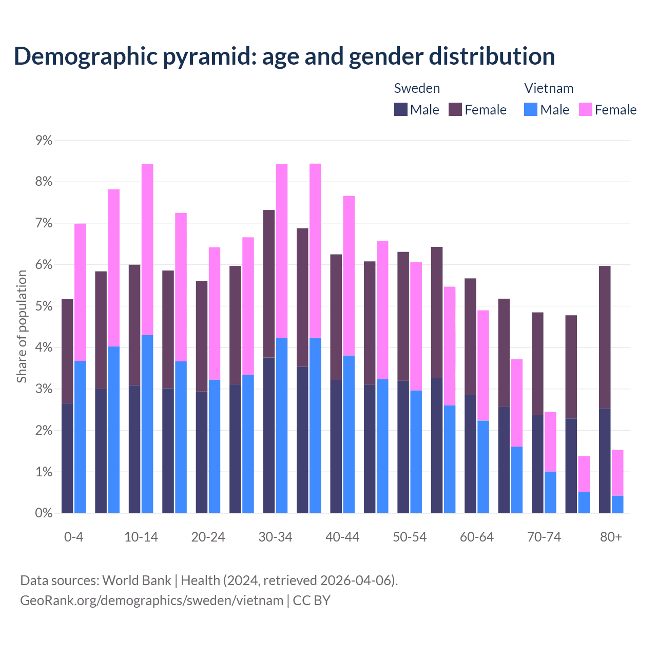 Demographics of Sweden compared to Vietnam: