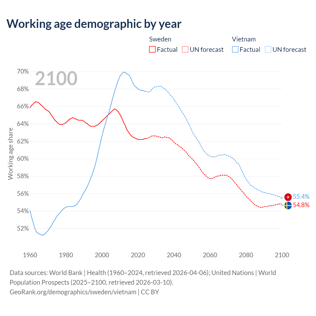 - Sweden has 6.65M working age adults (aged 15-64) vs 69.3M in Vietnam.