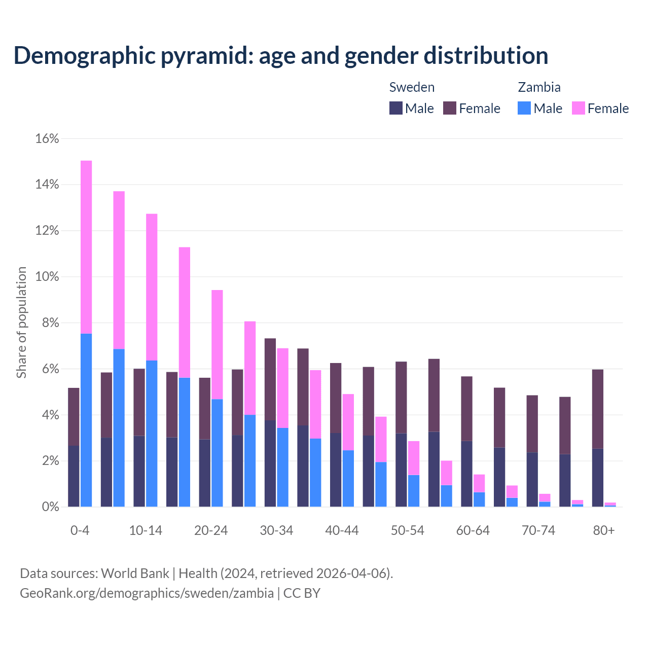 Demographics of Sweden compared to Zambia: