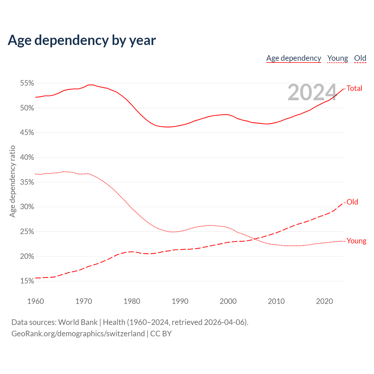 - World Bank | Health (1960–2024, retrieved 2026-04-06)