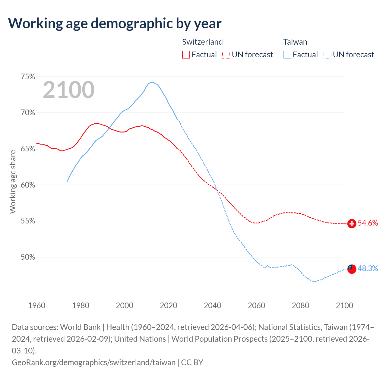 - Switzerland has 5.92M working age adults (aged 15-64) vs 16.1M in Taiwan.