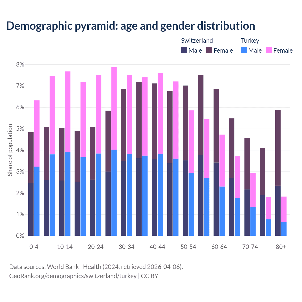 Demographics of Switzerland compared to Turkey: