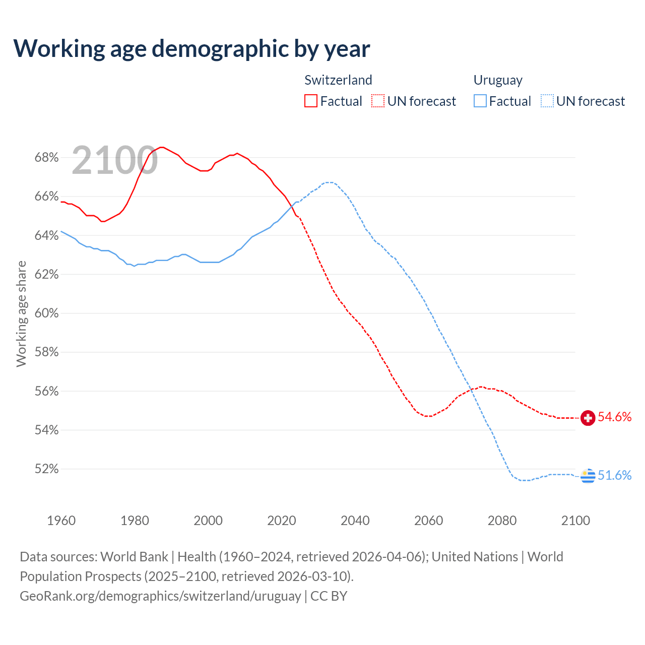 - Switzerland has 5.92M working age adults (aged 15-64) vs 2.22M in Uruguay.