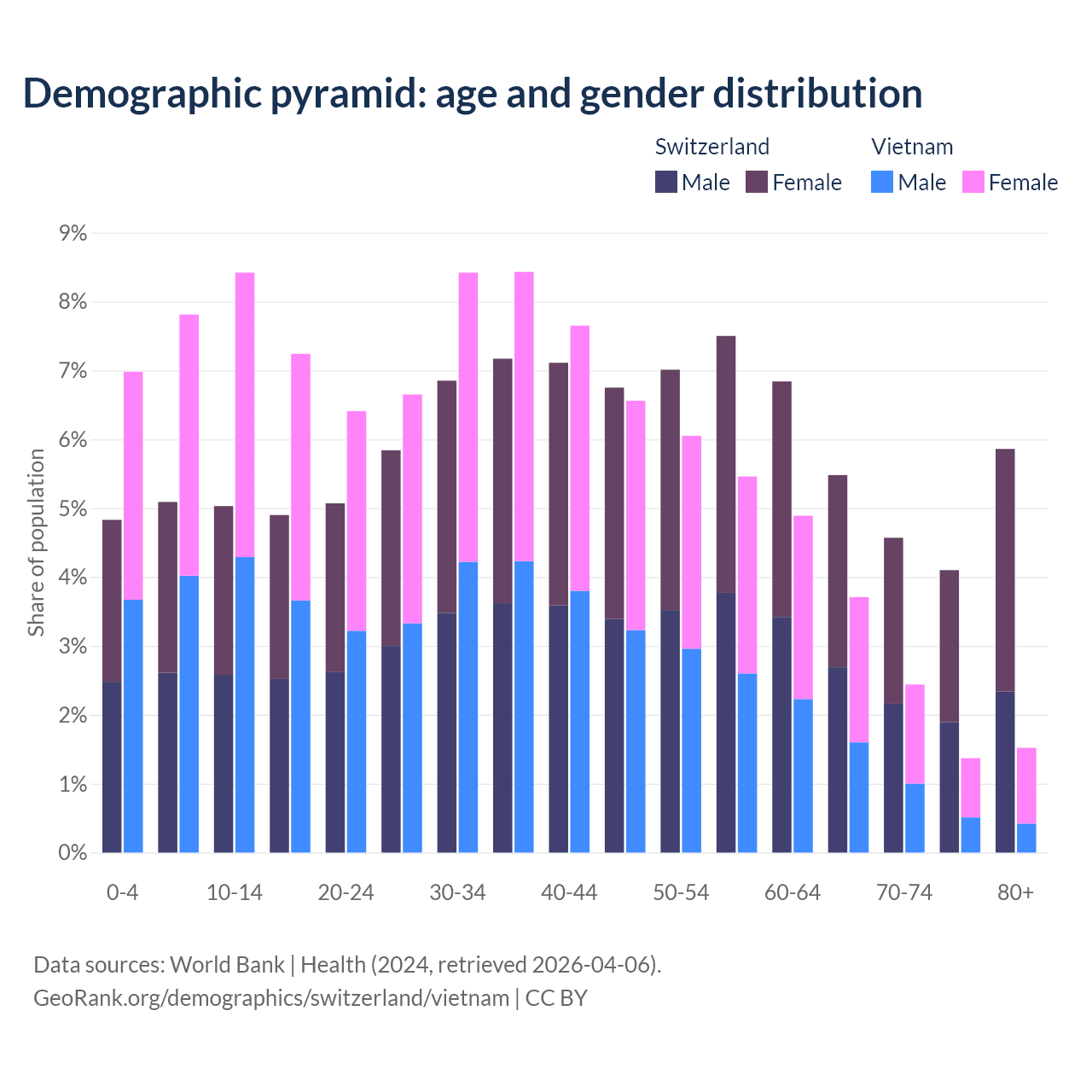 Demographics of Switzerland compared to Vietnam: