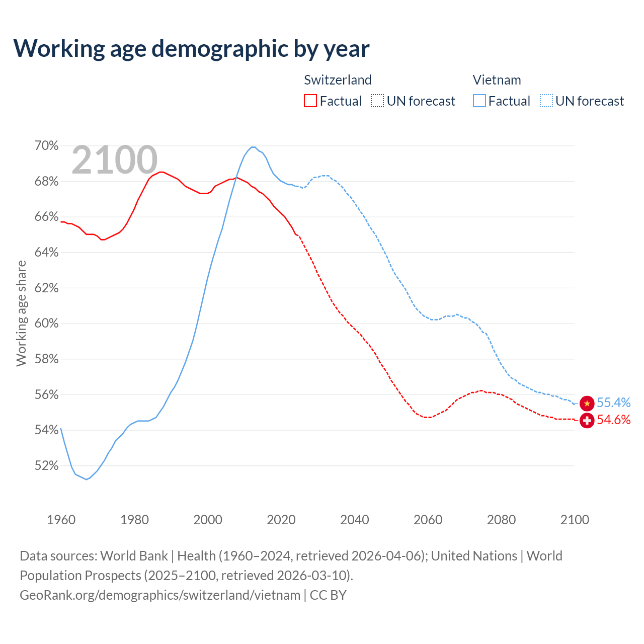 - Switzerland has 5.92M working age adults (aged 15-64) vs 69.3M in Vietnam.