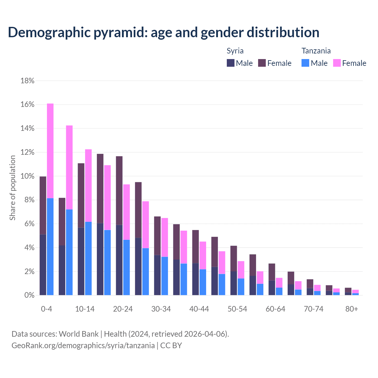 Demographics of Syria compared to Tanzania: