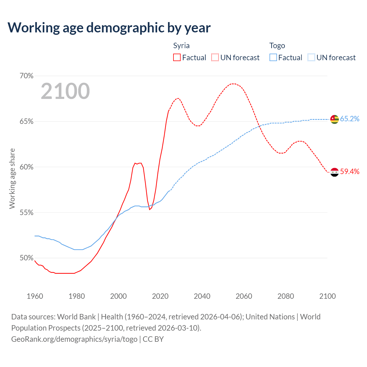 - Syria has 17.7M working age adults (aged 15-64) vs 5.72M in Togo.