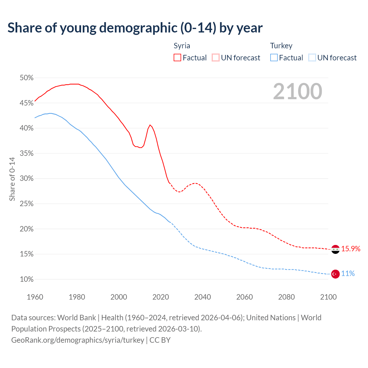 - The total fertility rate is 2.71 in Syria compared to 1.51 in Turkey.