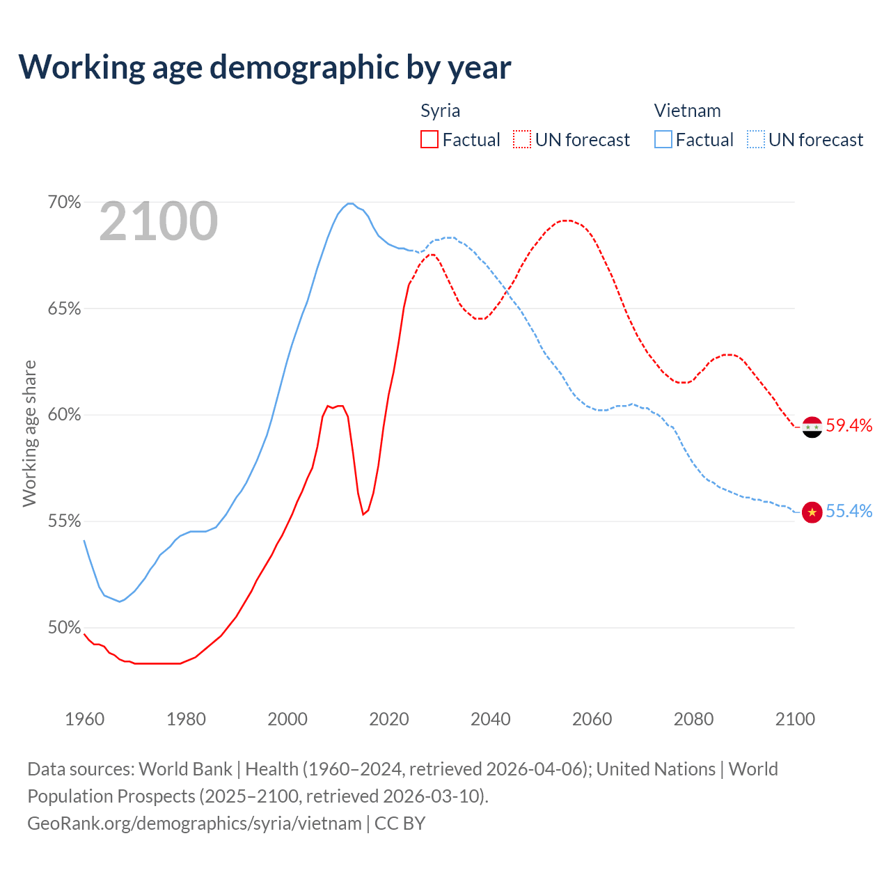 - Syria has 17.7M working age adults (aged 15-64) vs 69.3M in Vietnam.