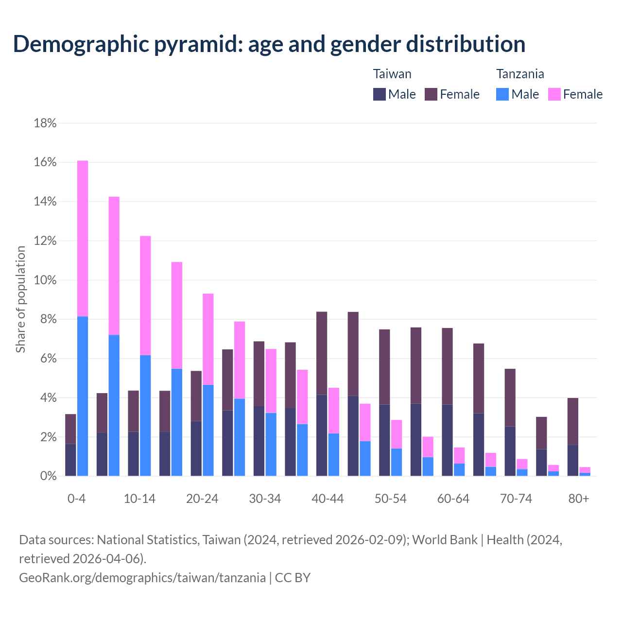 Demographics of Taiwan compared to Tanzania:
