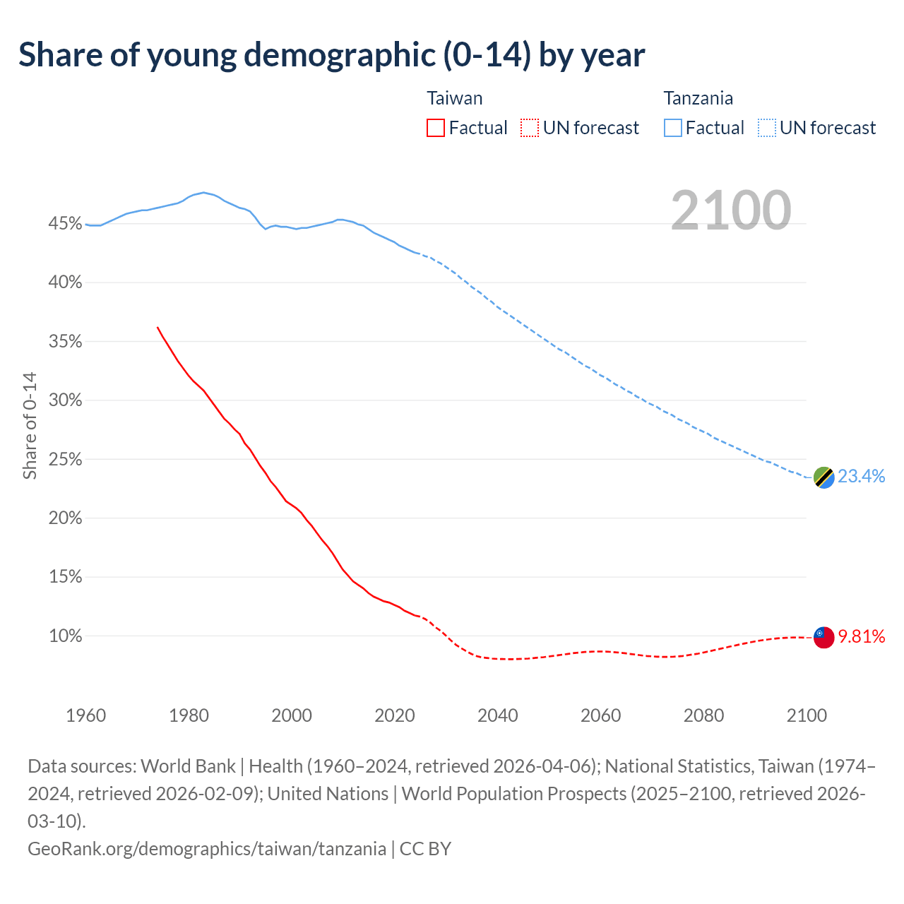 - As of 2026, the population of Taiwan is 23.2M vs 73.1M in Tanzania - 3.15 times difference.