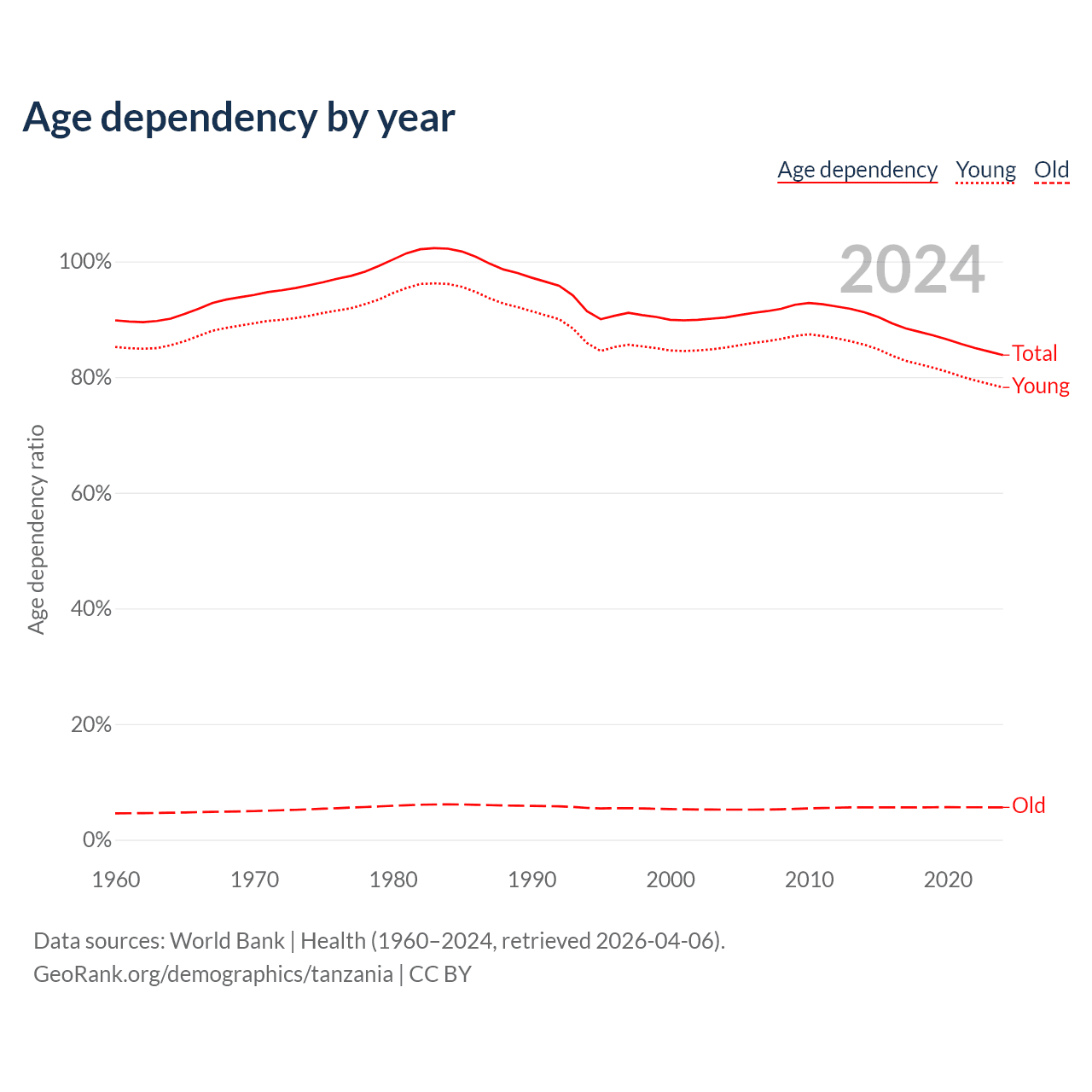 Data sources: World Bank | Health (1960–2024, retrieved 2026-04-06); U.S. Census Bureau (1960–2024, retrieved 2026-02-08).