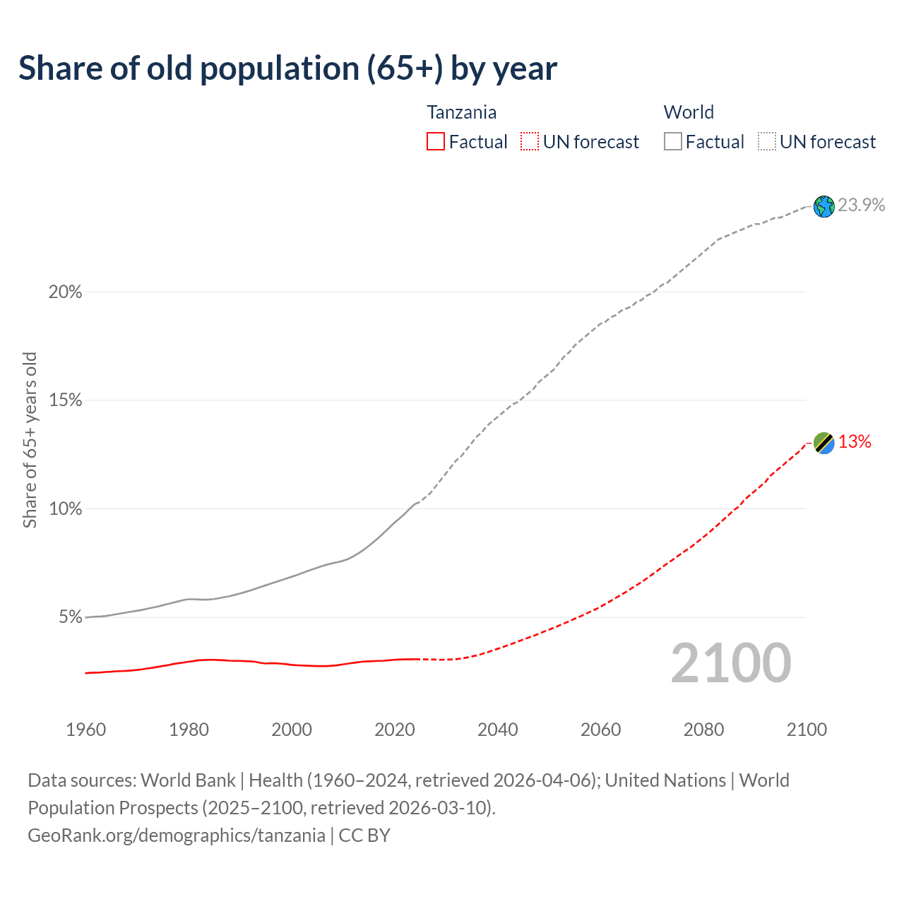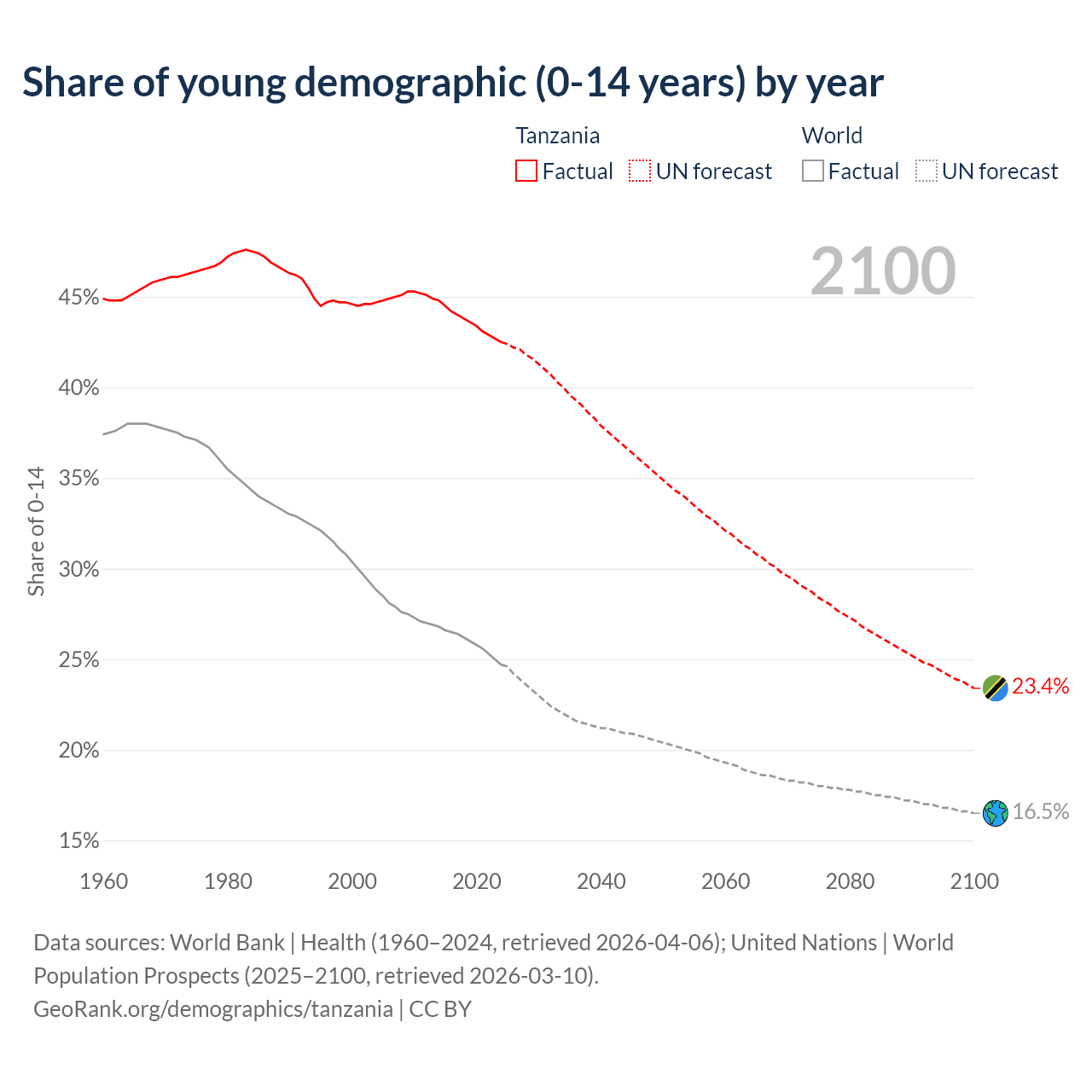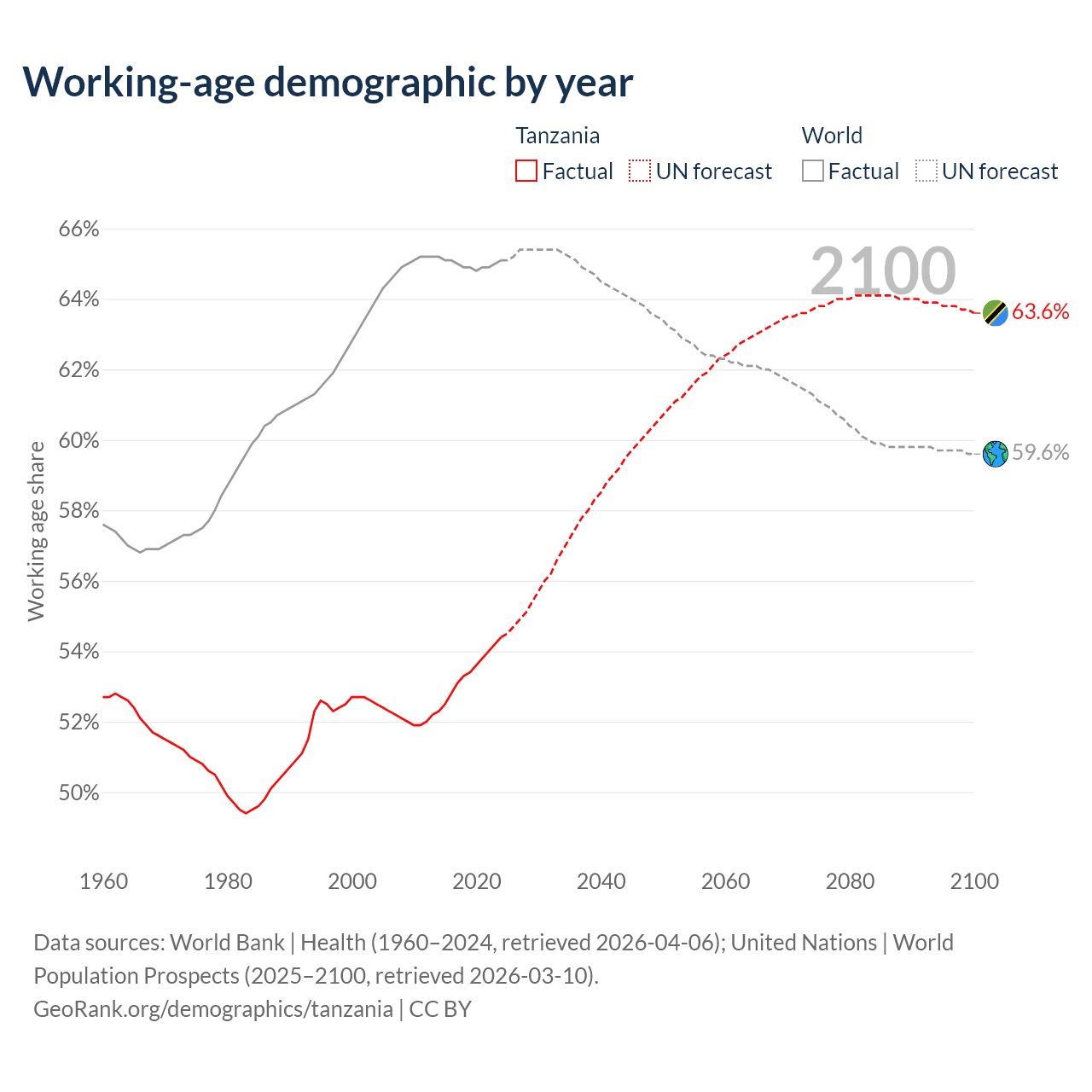 Median age in Tanzania, 1960–2100