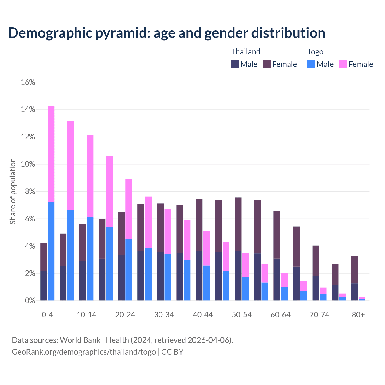 Demographics of Thailand compared to Togo: