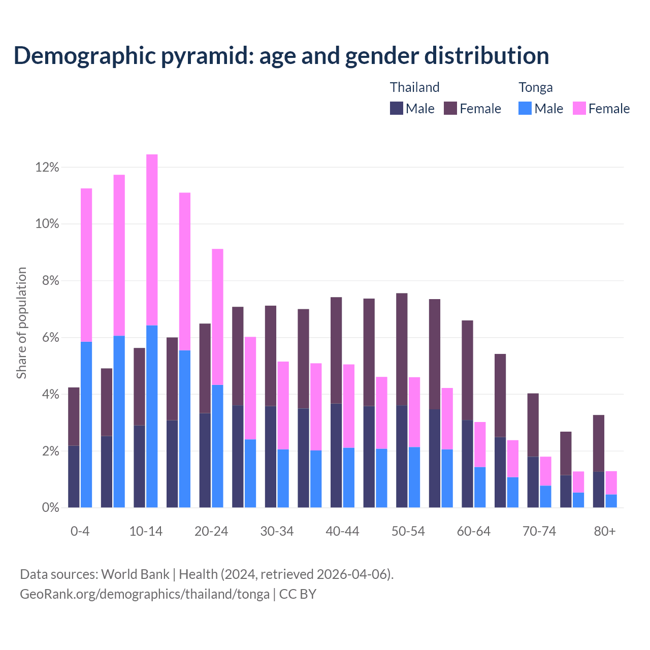 Demographics of Thailand compared to Tonga: