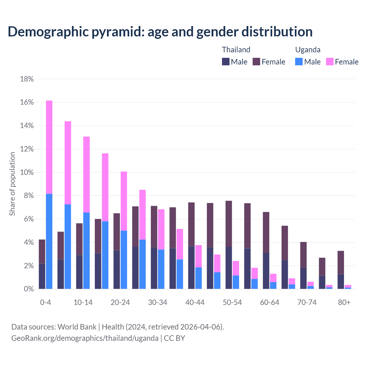Demographics of Thailand compared to Uganda: