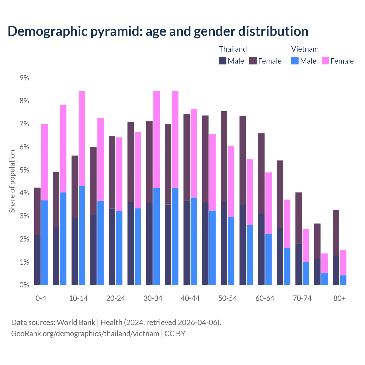 Demographics of Thailand compared to Vietnam: