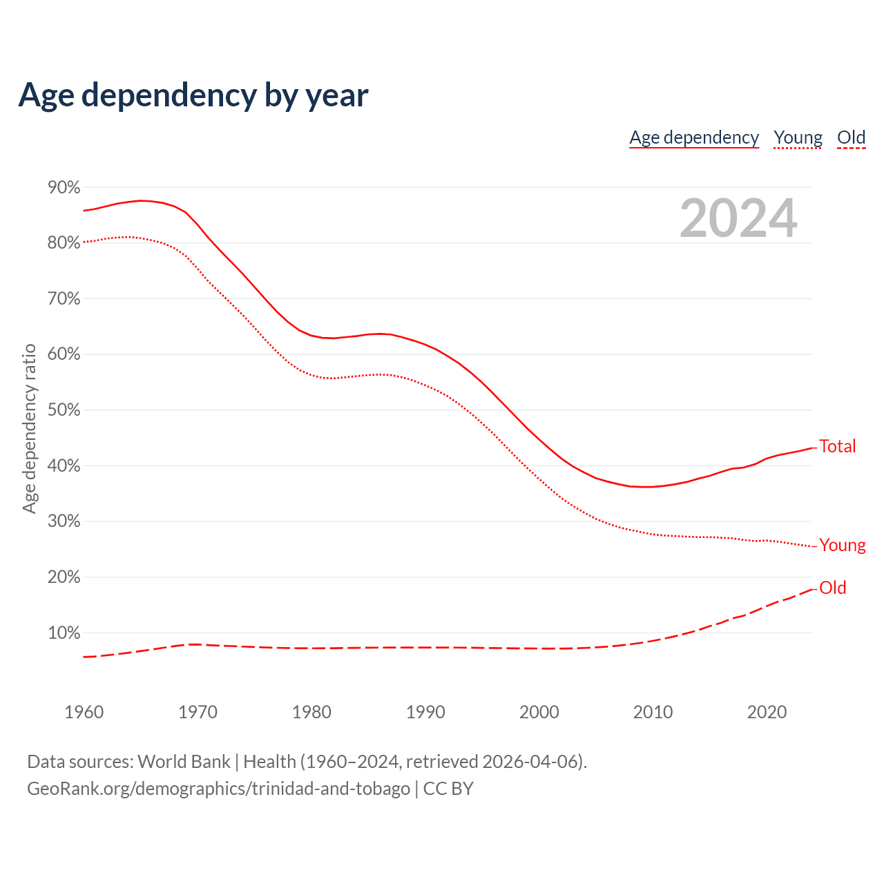 Data sources: World Bank | Health (1960–2024, retrieved 2026-04-06); U.S. Census Bureau (1960–2024, retrieved 2026-02-08).