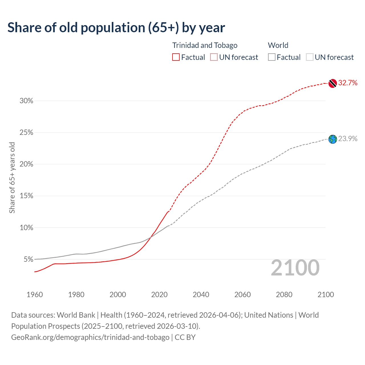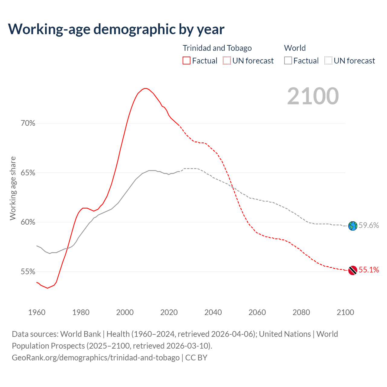 Median age in Trinidad and Tobago, 1960–2100