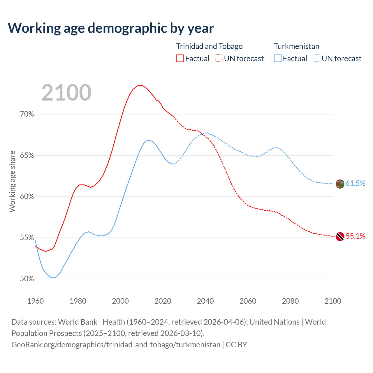 - Trinidad and Tobago has 960K working age adults (aged 15-64) vs 4.97M in Turkmenistan.
