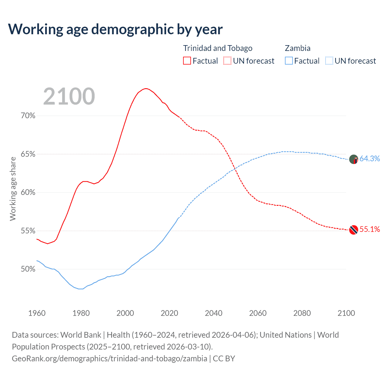 - Trinidad and Tobago has 960K working age adults (aged 15-64) vs 12.8M in Zambia.