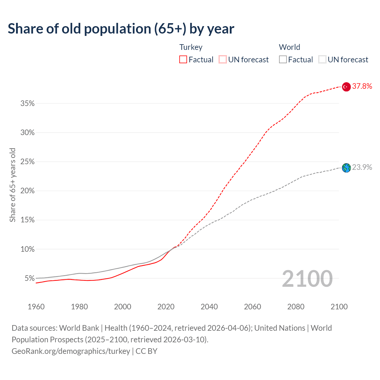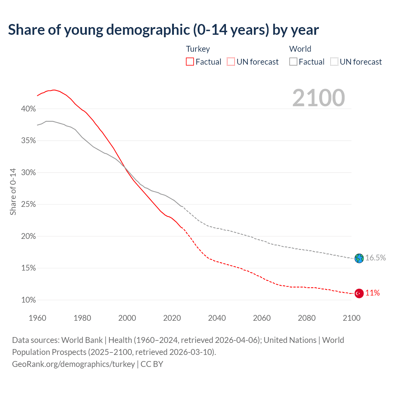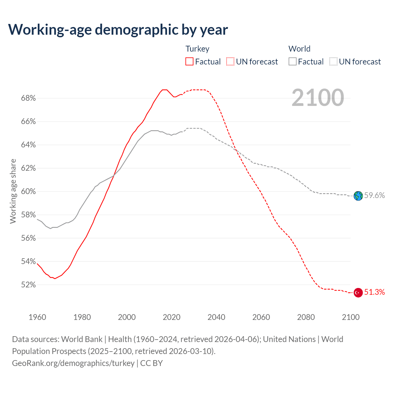 Median age in Turkey, 1960–2100