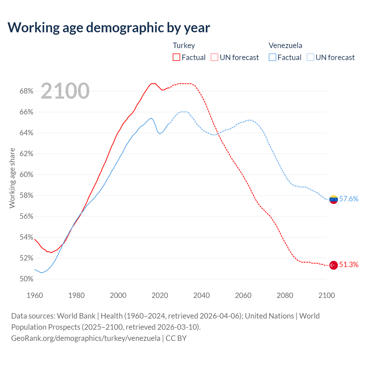 - As of 2026, the population of Turkey is 86M vs 28.7M in Venezuela - 3 times difference.