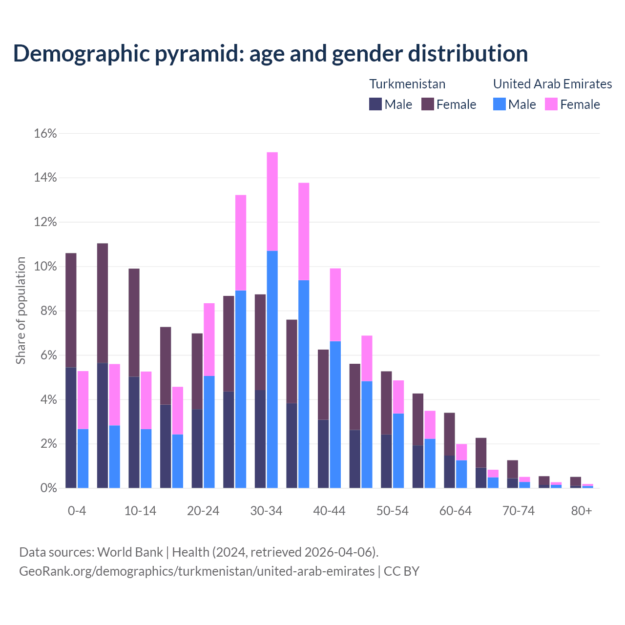 Demographics of Turkmenistan compared to the United Arab Emirates: