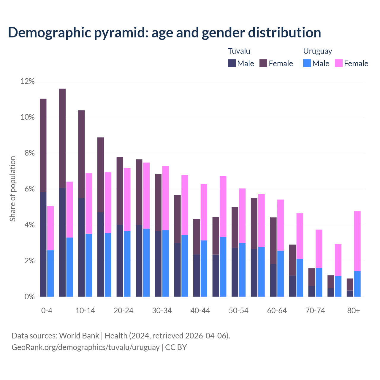 Demographics of Tuvalu compared to Uruguay:
