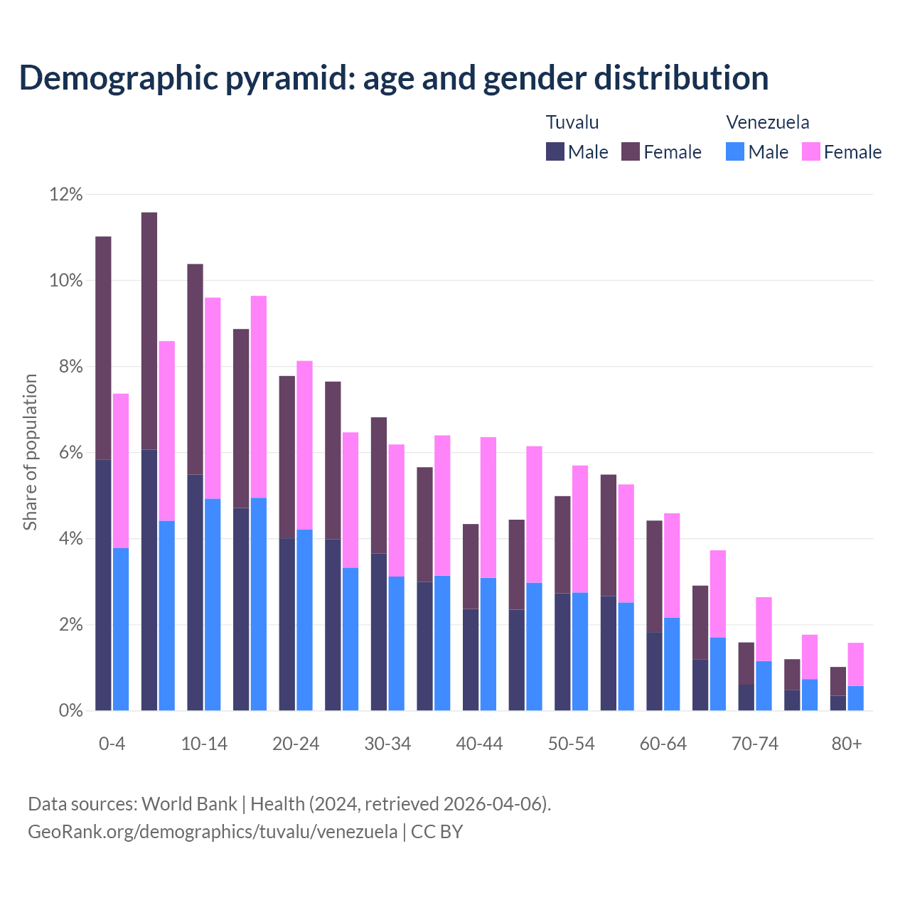 Demographics of Tuvalu compared to Venezuela: