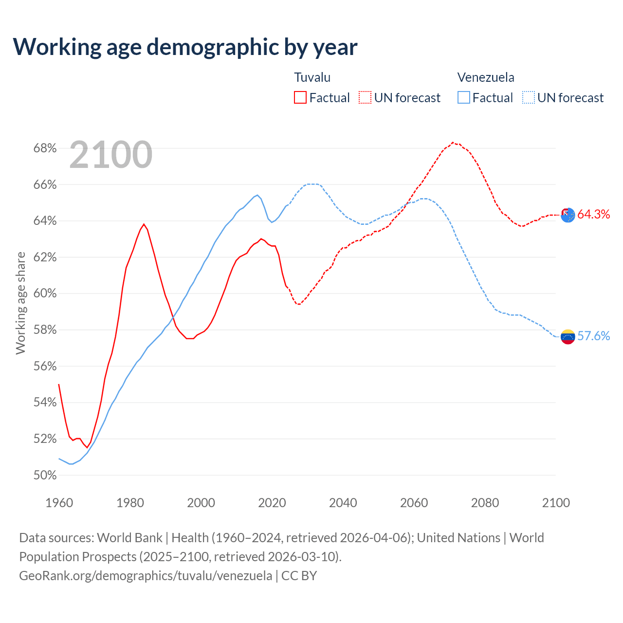 - Tuvalu has 5.64K working age adults (aged 15-64) vs 18.6M in Venezuela.
