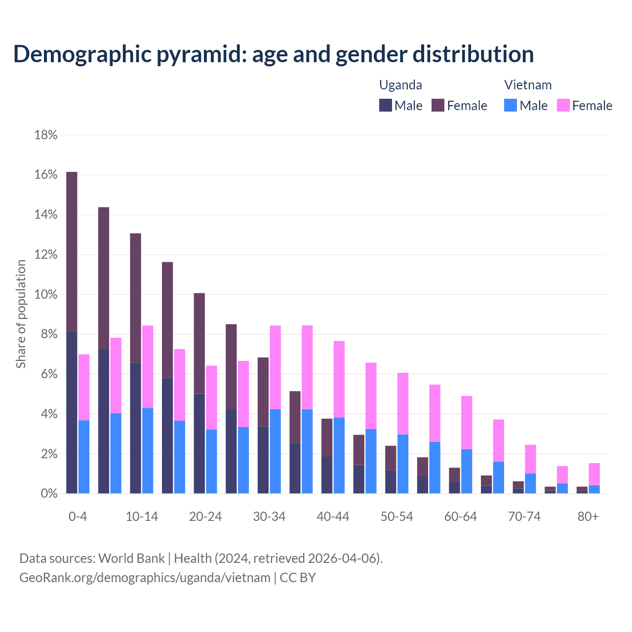 Demographics of Uganda compared to Vietnam: