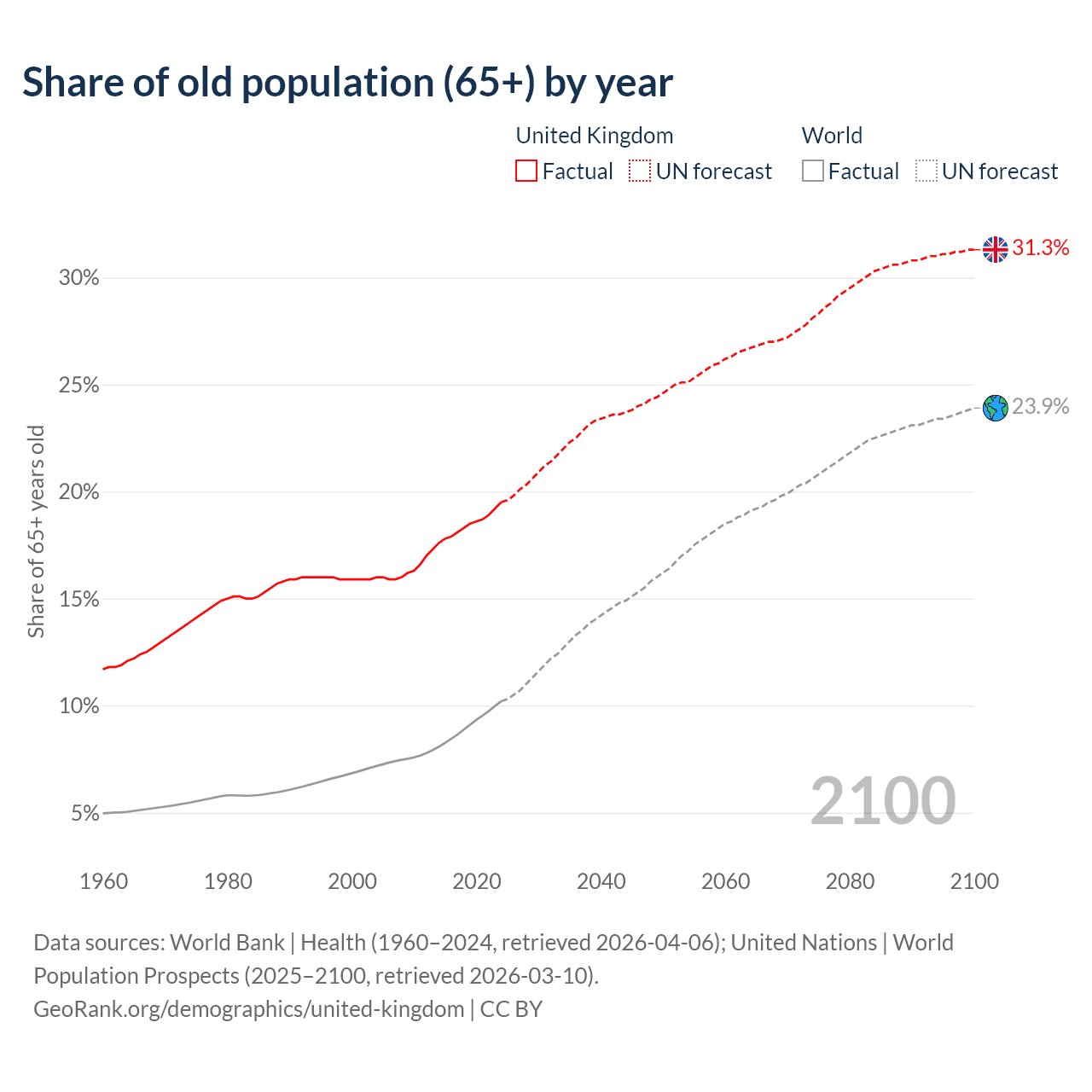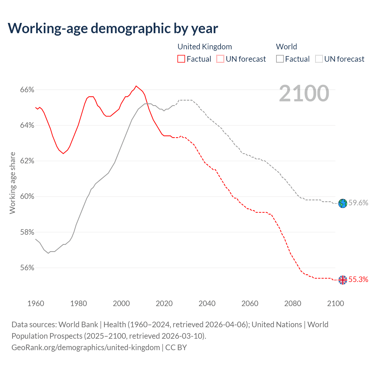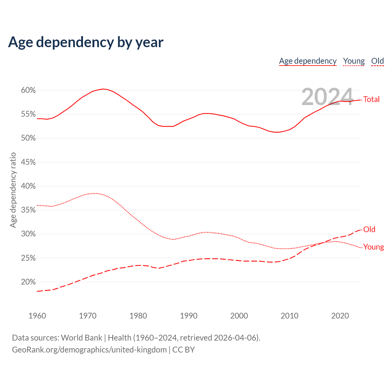 - World Bank | Health (1960–2024, retrieved 2026-04-06)