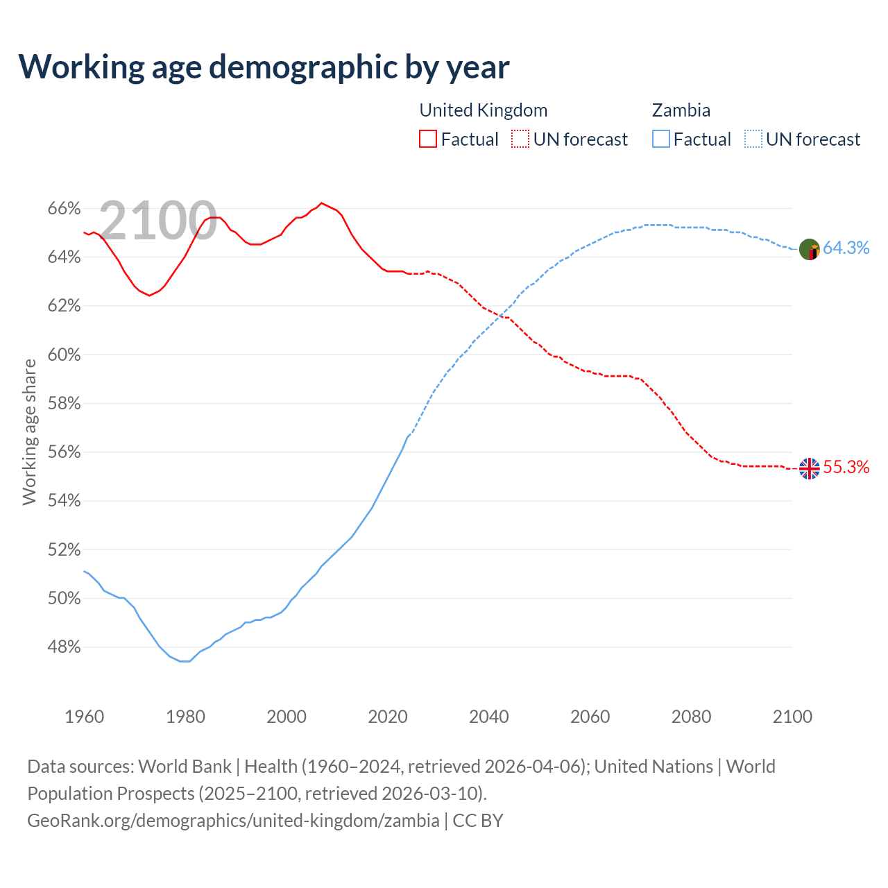 - The United Kingdom has 44.4M working age adults (aged 15-64) vs 12.8M in Zambia.